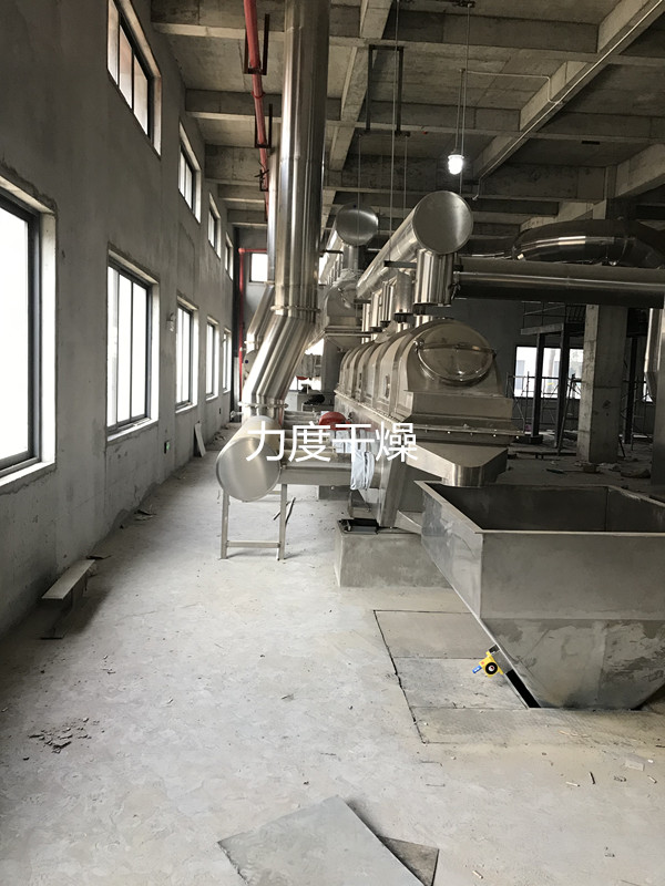 物料經雙級推料離心機分離后,下部出料直接進至振動流化床干燥系統進行干燥;干燥用的熱風采用蒸汽加熱,干燥系統設置有冷風機,將干燥后的物料進行冷卻;物料從振動流化床干燥機出來后直接落入包裝機中間倉進行暫時儲存。