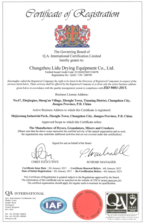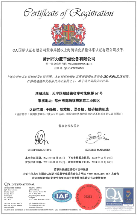 恭祝常州市力度干燥設(shè)備有限公司喜獲QA認(rèn)證!