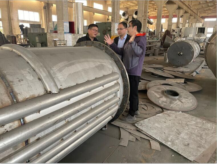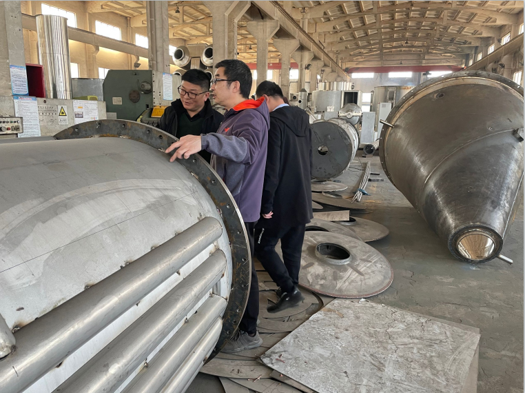 陽春三月春暖花開,一派欣欣向榮的景象,展露出春天可愛迷人的樣子。今日浙江一行客戶走訪了我公司,了解了非標式真空耙式干燥機!力度公司是真空耙式干燥機專業(yè)生產制作廠家,該設備是我公司改進設計的第三代產品,主要針對熱膨脹、同心度、軸密封、出料閥、傳動結構、攪拌形式、主軸強度、軸內加熱、軸承裝配結構、機械密封內部結構等基礎上,全面改用機械密封形式進行真空干燥作業(yè),大大提高了密封性和使用壽命 ??蛇m應制造大型高真空耙式干燥機。