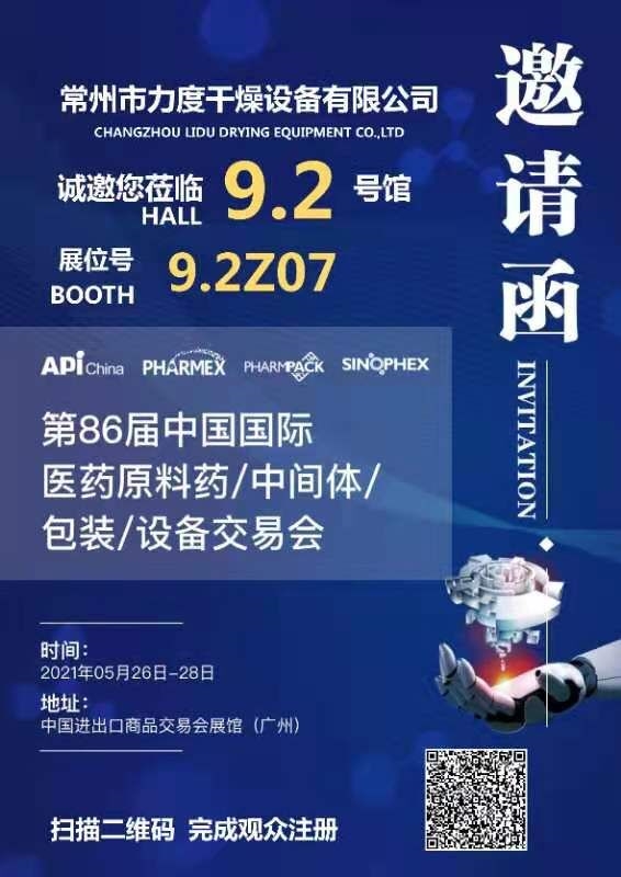 常州市力度干燥設備有限公司誠邀您參加第86屆國際醫藥原料會,我公司展位位于9.2號館,展位號9.2Z07,感謝您的光臨!