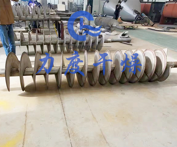 夾套式空心螺旋干燥冷卻機傳導部分有:主軸(空心)、螺旋葉片(空心)、壁面(半管式)等幾個部分。根據物料要求可以選用不同的媒介質進行加熱或冷 卻。物料可以一次性加注,然后關閉進出料口,這樣形成批次性生產。也可以 連續的進料,再從出料口連續的排料,操作是通過螺旋的轉速來控制物料的停 留時間,從而達到干燥或冷卻的要求。