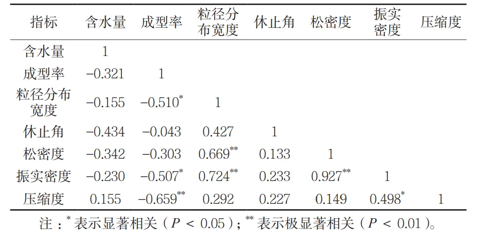 2.2顆粒主要物性指標(biāo)相關(guān)性分析