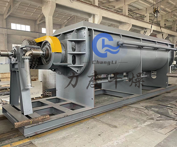 4、槳葉具有自潔能力。槳葉相向旋轉,葉片的兩個斜面反復攪拌、壓縮、松弛并推進物料,使頁面具有自潔能力,加熱面不斷獲得更新,也使槳葉干燥機的傳熱系數高于其他任何傳導干燥方式。