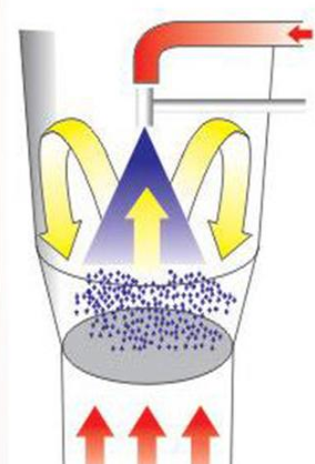 粉狀物料投入料斗密閉容器內,由于熱氣流的作用,使粉末懸浮呈流化狀循環流動,達到均勻混合,同時噴入霧狀粘結劑潤濕容器內的粉末,使粉末凝成疏松的小顆粒,成粒的同時,由于熱氣流對其作高效干燥,水份不斷蒸發,粉末不斷凝固,引過程重復進行,形成理想的,均勻的多微孔球狀顆粒,在容器中一次完成混合,造粒,干燥三個工序。
