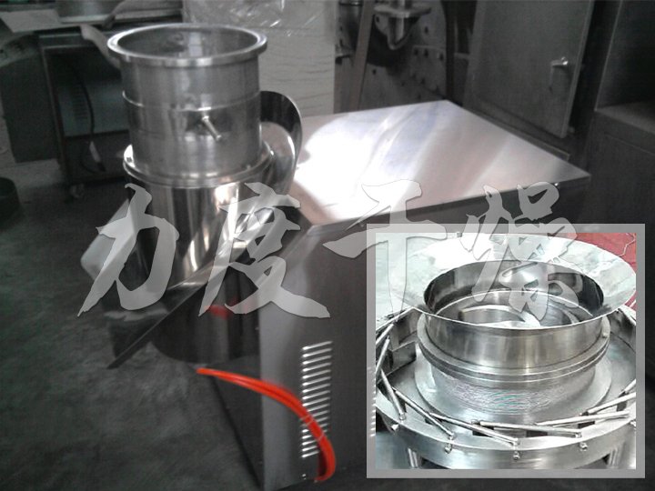 葉面肥造粒機是將混合均勻的軟材,在輾刀的擠壓下,使物料強制通過篩網,并受到刮刀的切割進而得到長度均勻的柱形顆粒。