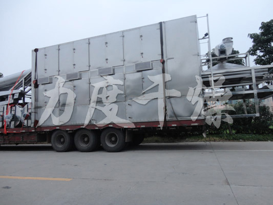 物料由加料器均勻地鋪在網帶上,網帶一般采用12-60目不銹鋼絲網,由傳動裝置拖動在干燥機內移動。干燥機由若干單元組成,每一單元熱風獨立循環,部分尾氣由專門排濕風機排出,廢氣由調節閥控制,熱氣由下往上或由上往下穿過鋪滿物料的網帶完成熱量與質量傳遞的進程,帶走物料水份。網帶緩慢移動,運行速度可根據物料溫度自由調節,干燥后的成品連續落入收料器中。上下循環單元根據用戶需要可靈活配備,單元數量亦可根據需要選取。